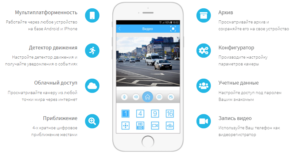 - Удаленный поворот камеры (180 по вертикали, 360 по горизонтали)